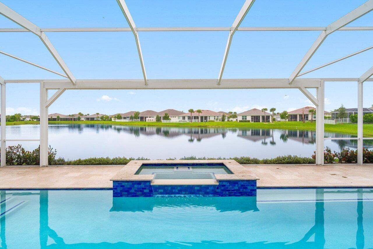 Lakefront Estate with Over $290,000 in Upgrades | Del Webb at Tradition Experience luxury living at its finest in this lakefront estate located within the prestigious 55+ gated community of Del Webb at Tradition. Expertly crafted and enhanced with over $290,000 in premium upgrades, this residence combines timeless elegance with modern comfort. Offering 3 bedrooms, 3.5 baths, a flex room/office, and an extended 3-car garage, the home showcases an inviting open floor plan ideal for entertaining. T...Lakefront Estate with Over $290,000 in Upgrades | Del Webb at Tradition Experience luxury living at its finest in this lakefront estate located within the prestigious 55+ gated community of Del Webb at Tradition. Expertly crafted and enhanced with over $290,000 in premium upgrades, this residence combines timeless elegance with modern comfort. Offering 3 bedrooms, 3.5 baths, a flex room/office, and an extended 3-car garage, the home showcases an inviting open floor plan ideal for entertaining. The owner's suite features tray ceilings, tranquil water views, and a spa-inspired bath with dual vanities, an oversized walk-in shower, and a spacious custom closet with direct access to the laundry room. At the heart of the home, a grand gathering room opens to a chef's kitchen boasting a large... island, granite countertops, upgraded stainless-steel appliances and cabinetry, a wine cooler, elegant tiled backsplash, and a walk-in pantry. Zero-corner impact sliders fully open to merge indoor and outdoor living, revealing a covered lanai with summer kitchen, a large screened pool with heated spa overlooking the lake, and panoramic screening and water views. Additional highlights include upgraded faux-wood tile flooring throughout, custom window treatments, custom closets in every room, a custom drop zone off the garage entry, plywood flooring in the attic, and an enhanced landscape and lighting package. This remarkable property embodies the best of Florida living luxurious, effortless, and ideally situated in one of Tradition's most sought-after active-adult communities.