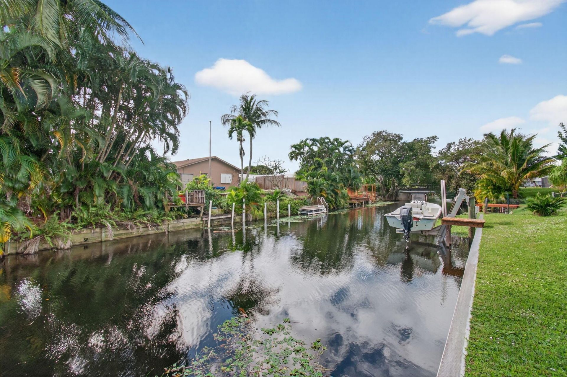 Quintessential Waterfront Living-No HOA! This charming 3-bedroom, 2-bath single-family waterfront home offers a private boat dock/lift with access to Lake Osborne and Lake Ida, providing miles of boating, fishing, and water fun. No HOA, close to everything, and just 3 minutes to I-95, with restaurants and shopping nearby. The home features a split floor plan with a living room, dining room, and family room--perfect for comfortable daily living and entertaining. The backyard is the true highlight...Quintessential Waterfront Living-No HOA! This charming 3-bedroom, 2-bath single-family waterfront home offers a private boat dock/lift with access to Lake Osborne and Lake Ida, providing miles of boating, fishing, and water fun. No HOA, close to everything, and just 3 minutes to I-95, with restaurants and shopping nearby. The home features a split floor plan with a living room, dining room, and family room--perfect for comfortable daily living and entertaining. The backyard is the true highlight, showcasing a gazebo, grassy yard, canal frontage, and private dock. A new retractable screen connects the family/dining room to the outdoors, creating the ultimate Florida lifestyle experience.Recent upgrades include:Roof (2020) Hurricane-impact windows and doors, including garage door A/C and electrical panel (approx. 4-5 years old)Seawall (approx. 4-5 years old) Neptune Boat lift 3000-4000 lbs,accomodate up to 24 foot boat.The kitchen features granite countertops, soft-close cabinetry, a brand-new cooktop, and newer other appliances. All bedrooms are generously sized with windows that provide bright, natural light. Both bathrooms are updated and hallway bathroom includes windows as well.Additional features include ample storage, large closets, a separate storage room and a one car garage.Auto garage door opener. ADT alrm system installed.A spacious laundry room.This well-maintained, functional, and truly unique waterfront home offers the perfect opportunity to live your Florida life to the fullest. Schedule your showing today!