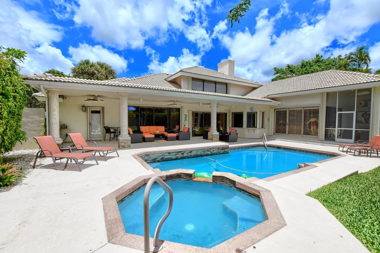 AMAZING 5 bedroom (or 4 bedroom plus a beautiful office w/ private bth & walk in closet) that sits on a completely private almost half acre interior lot overlooking a gorgeous resort style heated salt water pool, spa & huge back yard. This stunning contemporary/ transitional home was designed for luxury & comfort with it's stone fireplace, separate dining rm, open eat-in chefs kitchen w/ center island, open family rm, wet bar, split fl plan w/ separate master wing w/ his & hers walk in closets,...AMAZING 5 bedroom (or 4 bedroom plus a beautiful office w/ private bth & walk in closet) that sits on a completely private almost half acre interior lot overlooking a gorgeous resort style heated salt water pool, spa & huge back yard. This stunning contemporary/ transitional home was designed for luxury & comfort with it's stone fireplace, separate dining rm, open eat-in chefs kitchen w/ center island, open family rm, wet bar, split fl plan w/ separate master wing w/ his & hers walk in closets, his & her bathrms, steam shower for him, shower & whirlpool for her, a 3 bedrm guest or family wing plus a den/office w/full bath. This outstanding home is loaded with custom features. Walk to the Broken Sound clubhouse, restaurants, golf course, gym, spa, tennis, & pickel ball cts. New Roof