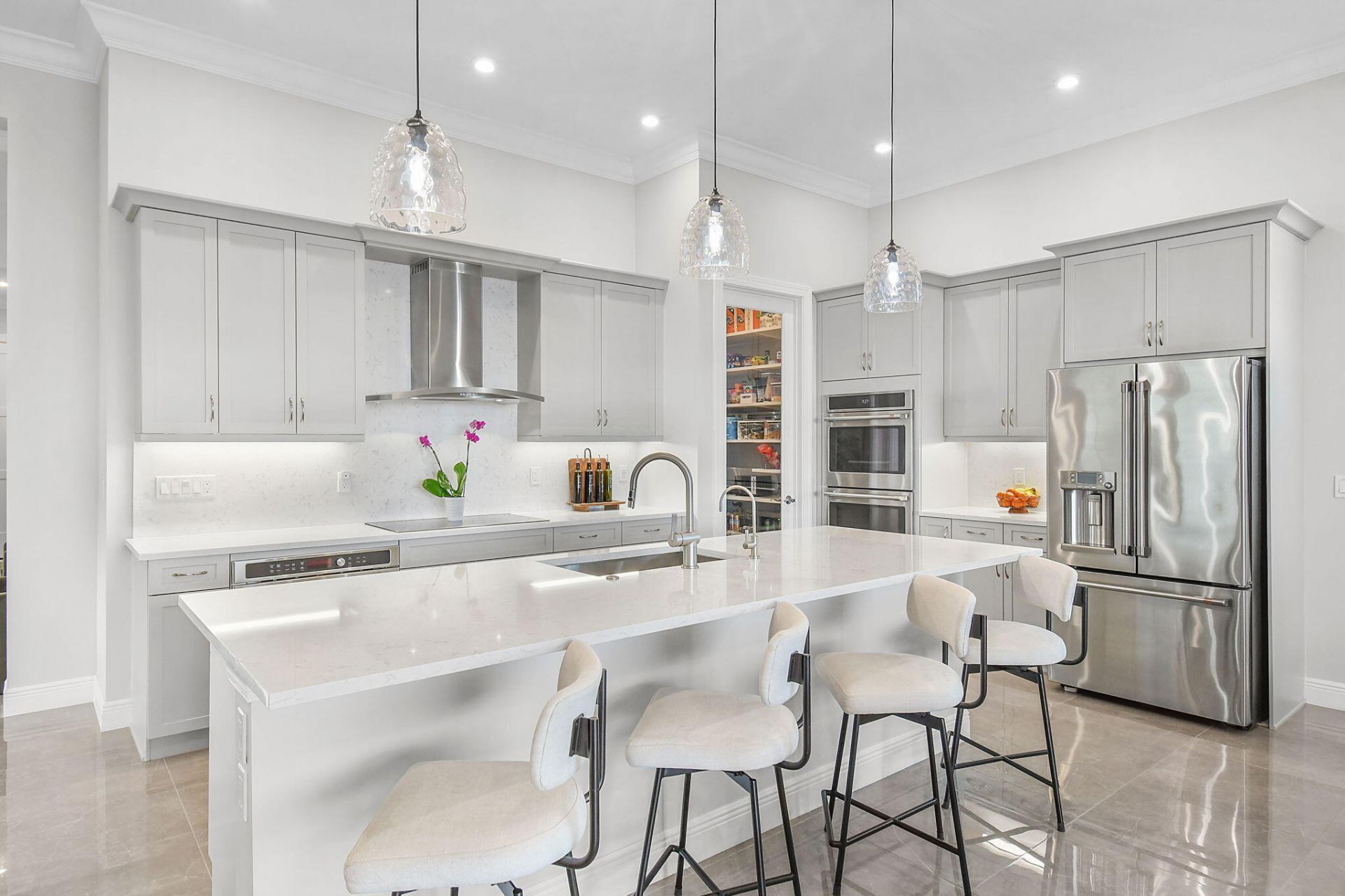 Experience the pinnacle of resort-style living in PGA Village Verano with this highly upgraded 2024 Kolter-built lakefront residence set on a premium wide-water homesite with ideal southern exposure. Designed for the most discerning buyer, this 3-bedroom, 3-bath home with a 3-car garage showcases over $200,000 in builder and post-closing upgrades, offering a move-in-ready luxury lifestyle without the wait to build.From the moment you enter, the home impresses with 24x24 high-gloss tile flooring ...Experience the pinnacle of resort-style living in PGA Village Verano with this highly upgraded 2024 Kolter-built lakefront residence set on a premium wide-water homesite with ideal southern exposure. Designed for the most discerning buyer, this 3-bedroom, 3-bath home with a 3-car garage showcases over $200,000 in builder and post-closing upgrades, offering a move-in-ready luxury lifestyle without the wait to build.From the moment you enter, the home impresses with 24x24 high-gloss tile flooring throughout, upgraded solid-core interior doors, custom moulding, and a stunning Therma-Tru privacy glass entry. The open-concept design is enhanced by oversized sliding glass doors that seamlessly connect indoor and outdoor living while framing breathtaking long lake views and all-day southern light.The chef's kitchen was thoughtfully upgraded with GE Caf? appliances including a 36 induction cooktop, double ovens, chimney hood, and expanded cabinetry, complemented by full-height backsplash, glass pantry door, designer lighting, and extensive storage, ideal for entertaining and everyday luxury. Spa-inspired baths feature floor-to-ceiling tile, frameless showers, upgraded vanities, and extended mirrors, creating a true retreat feel in every space.Step outside to a dramatically expanded 20x40 screened lanai with pavers overlooking wide water, perfect for sunrise coffee, evening gatherings, and enjoying Florida's indoor-outdoor lifestyle year-round. A premium hot tub, additional exterior lighting, and full-home gutters further enhance comfort and functionality.Additional highlights include:Custom closet systems throughoutPlantation shutters in all rooms including garageDesigner lighting and ceiling fansWhole-home paint upgradesReverse osmosis water systemInsulated garage with mini-split A/CTesla charger service + additional dedicated electrical upgradesAdded attic flooring and overhead storageLocated in PGA Village Verano, residents enjoy a resort-caliber lifestyle with a spectacular clubhouse campus, fitness center, indoor and outdoor pools, tennis, pickleball, social clubs, dining (PGA Village), and year-round activities, all within a gated, beautifully maintained community.This is a rare opportunity to own a nearly new, extensively upgraded waterfront home on one of Verano's most desirable lots, where luxury, lifestyle, and location come together seamlessly.