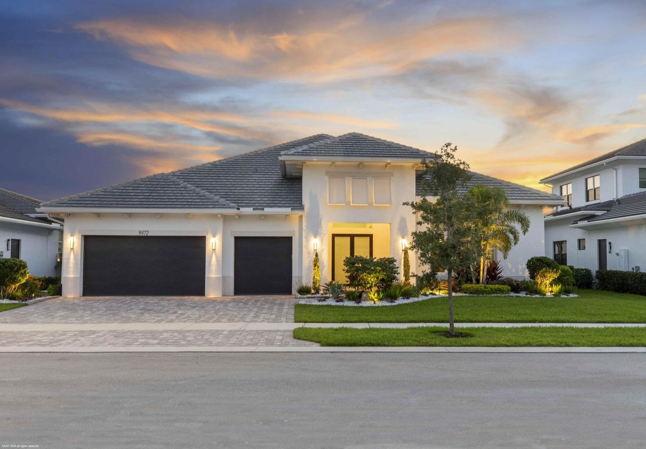 Experience refined Florida living in this exquisite 5-bedroom, 4.5-bathroom Barbados V estate home by Kenco, perfectly positioned in one of Palm Beach Gardens' newest gated communities- Coral Isles at Avenir. Designed for both elegance and comfort, this single-story home offers exceptional craftsmanship, a thoughtful open-concept layout, and an outdoor oasis that rivals any resort. From the moment you arrive, the home's striking curb appeal sets the tone. A paver driveway leads to the spacious ...Experience refined Florida living in this exquisite 5-bedroom, 4.5-bathroom Barbados V estate home by Kenco, perfectly positioned in one of Palm Beach Gardens' newest gated communities- Coral Isles at Avenir. Designed for both elegance and comfort, this single-story home offers exceptional craftsmanship, a thoughtful open-concept layout, and an outdoor oasis that rivals any resort. From the moment you arrive, the home's striking curb appeal sets the tone. A paver driveway leads to the spacious 3-car garage, while lush tropical landscaping, enhanced by professional landscape lighting, welcomes you to the front entry with brand new impact rated, double front doors. Inside, soaring ceilings, expansive windows with electronic shades, Lutron lighting, & designer finishes create an inviting atmosphere.Open Concept Living at Its FinestThe heart of the home is an expansive great room seamlessly connecting the living, dining, and kitchen spaces; perfect for entertaining or relaxing with family. Walls of glass frame views of the custom pool and outdoor living area, blurring the line between indoor and outdoor spaces. The gourmet chef's kitchen features top-of-the-line appliances, a large center island with seating, custom cabinetry, and sleek quartz countertops. The adjacent dining area and living room, with elegant lighting and designer details, ensure every gathering feels special.Private Bedroom RetreatsWith five spacious bedrooms, 4 of them with their own en-suite bathroom, this home provides privacy and comfort for every member of the household. The primary suite is a true sanctuary, complete with a spa-like bathroom featuring a soaking tub, oversized walk-in shower, and dual vanities. Large walk-in, custom designed closets offer abundant storage. Enjoy panoramic views of paradise (in your own backyard).Resort-Style Outdoor LivingStep outside to a backyard designed for year-round enjoyment. The custom pool, complete with a heated spa, invites relaxation, while the custom-built summer kitchen with Lynx appliances, motorized screens, and beautifully crafted fire pit, makes hosting unforgettable gatherings a breeze. Expansive covered and open patio spaces provide plenty of room for lounging and dining al fresco. Professionally installed landscape lighting ensures the beauty of the outdoor space shines both day and night.Community & LifestyleThis prestigious gated community offers a wealth of amenities for residents to enjoy; think tennis courts, pickleball, clubhouse, fitness center, resort-style pools, walking trails, and more. All of this is set within a meticulously maintained environment that provides security, privacy, and a strong sense of community.Prime Palm Beach Gardens LocationLocated just minutes from world-class golf courses, pristine beaches, upscale shopping, and fine dining, this home combines tranquility with convenience. Enjoy quick access to major highways, top-rated schools, and Palm Beach International Airport, making travel and daily commutes effortless.Whether hosting large gatherings or enjoying quiet evenings by the pool, this home was designed for those who appreciate the finest in Florida living. Move-in ready and brimming with upgrades. Welcome home to 9372 Coral Isles!